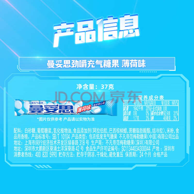 商品名称:曼妥思 劲嚼充气糖脆皮软心珠薄荷味糖果37g 薄荷糖 休闲零食开学礼物