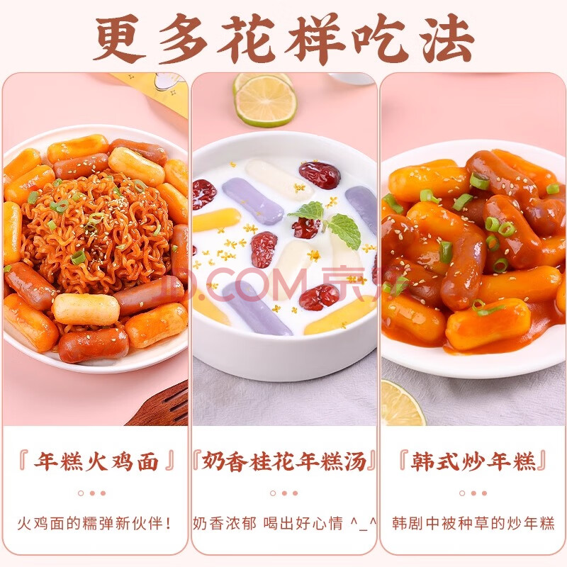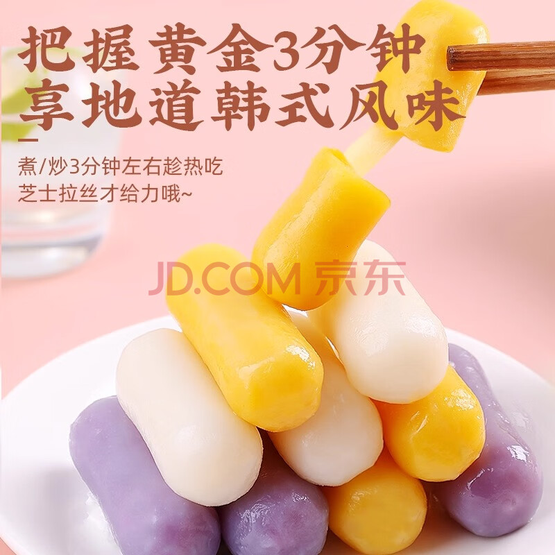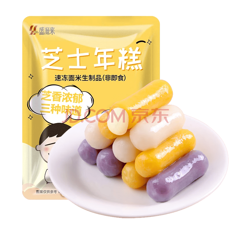 商品名称:盛源来 三色年糕1斤 芝士年糕夹心拉丝 火锅食材韩式年糕条 南瓜紫薯味