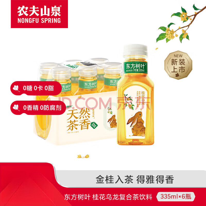 商品名称:农夫山泉东方树叶无糖茶饮料0糖0脂0卡小瓶装 桂花乌龙茶335ml*6瓶塑膜装