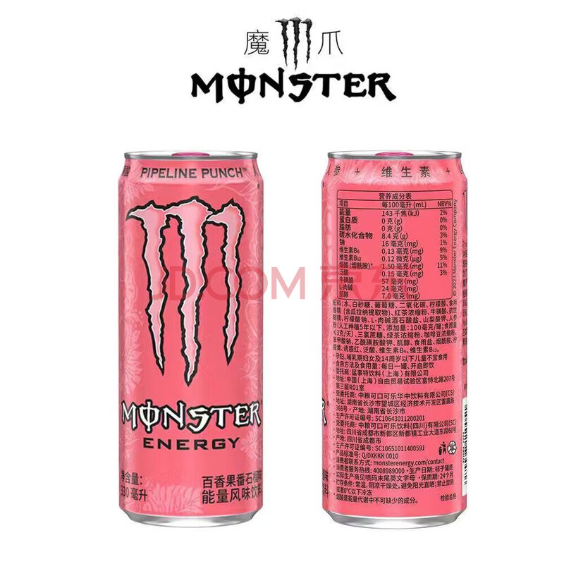 商品名称:可口可乐(Coca-Cola) 魔爪 Monster 维生素功能饮料 百香果番石榴 330ml*12罐 整箱