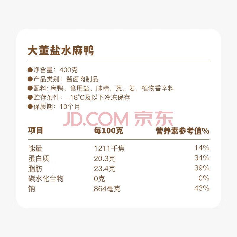 商品名称:董到家大董 懒人速食方便菜 加热速食下饭菜盐水麻鸭400g