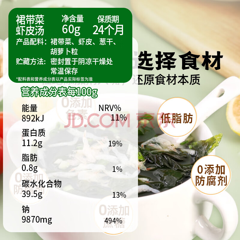 商品名称:口味全 裙带菜虾皮汤60g增味方便速食免煮早餐冲泡脱水蔬菜海带即食汤