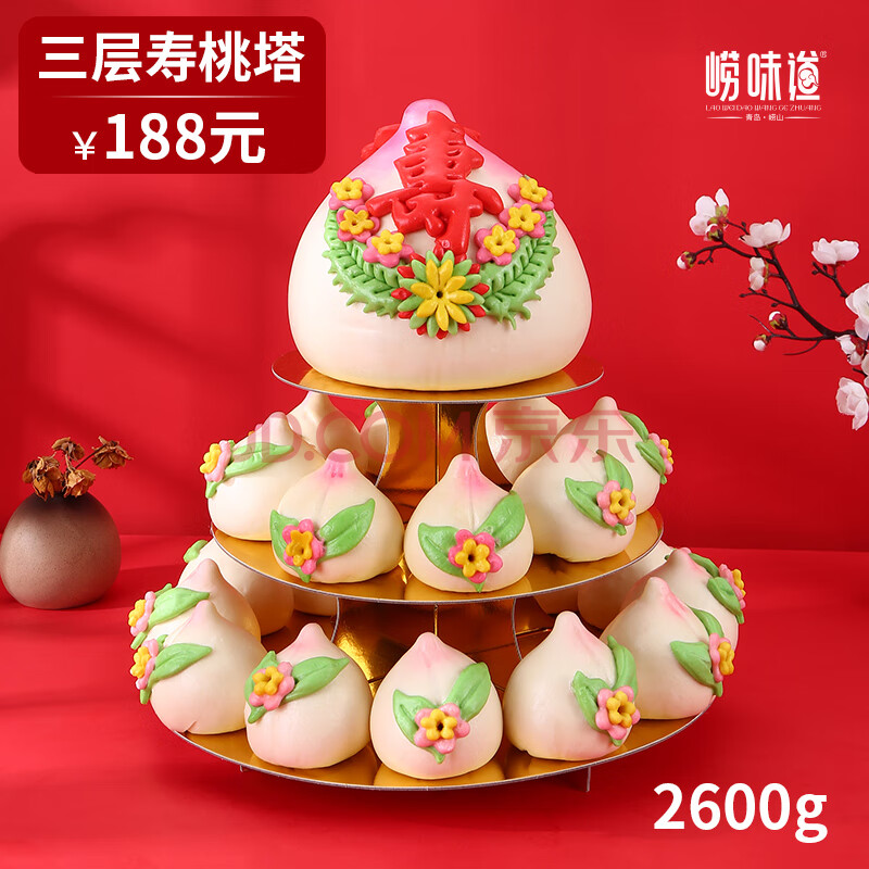 商品名称:崂味道山东王哥庄三层寿桃塔大馒头生日老人祝寿包2.6kg源头直发