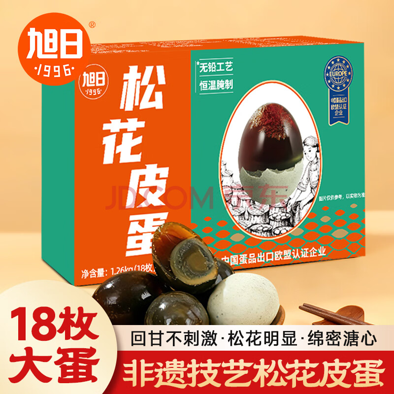 商品名称:旭日广东开平出口欧盟品质红茶腌制即食松花皮蛋18枚2.52斤源头直发