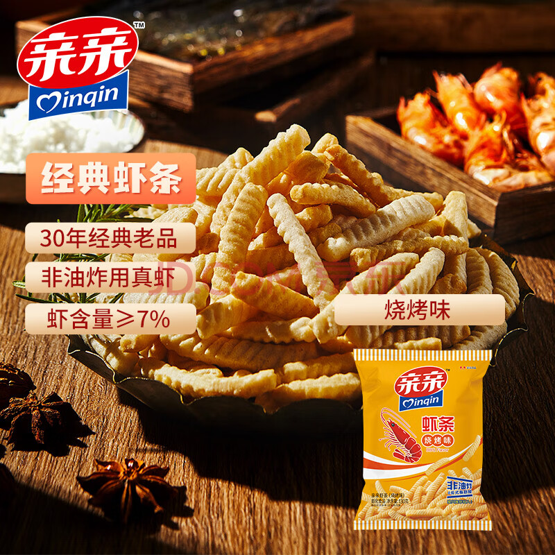 商品名称:亲亲膨化休闲食品 虾条130g烧烤味大包装加大份量 零食 年货大礼包