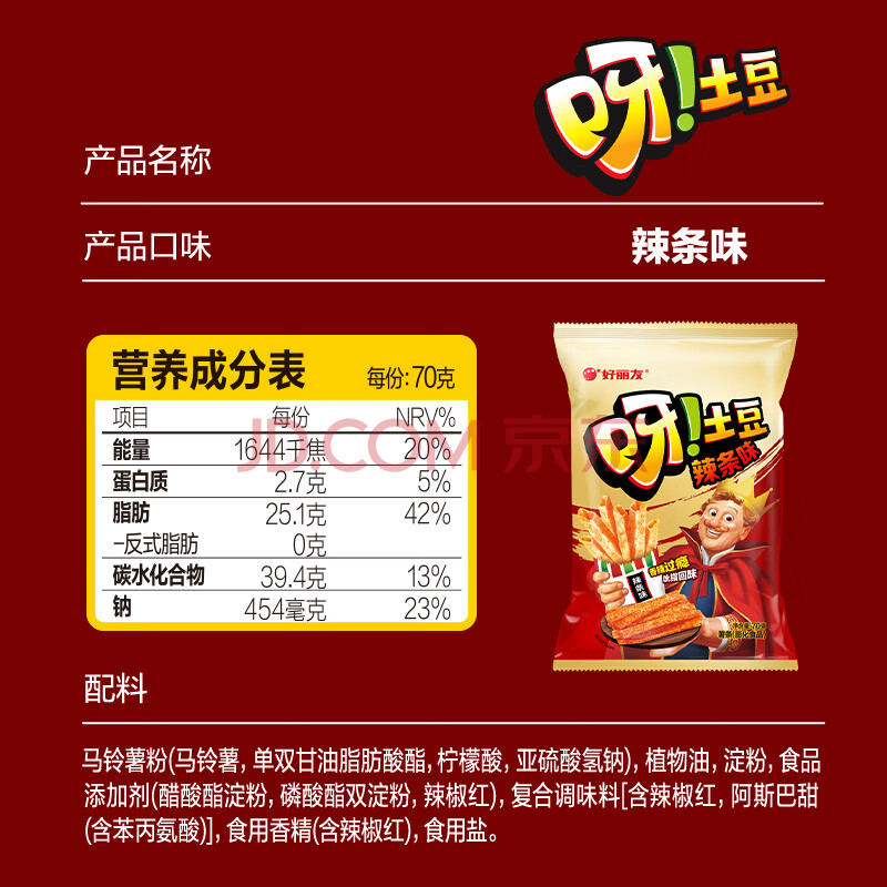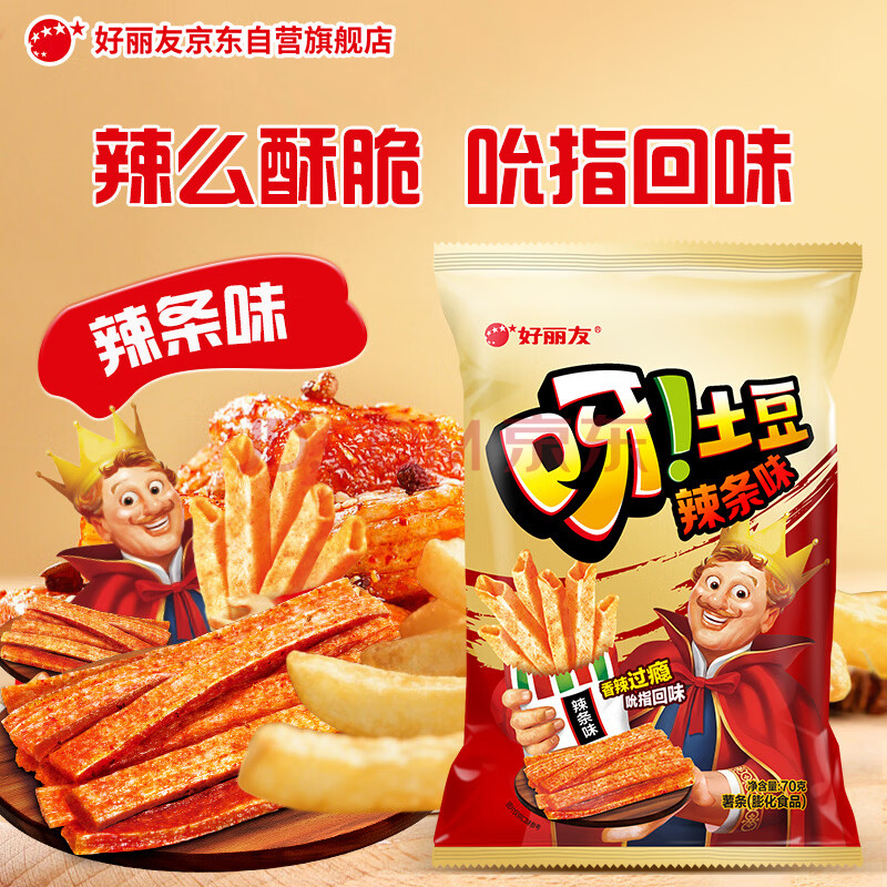 商品名称:好丽友(orion)呀土豆辣条味70g/袋 休闲零食膨化食品追剧解馋小包装薯条小吃