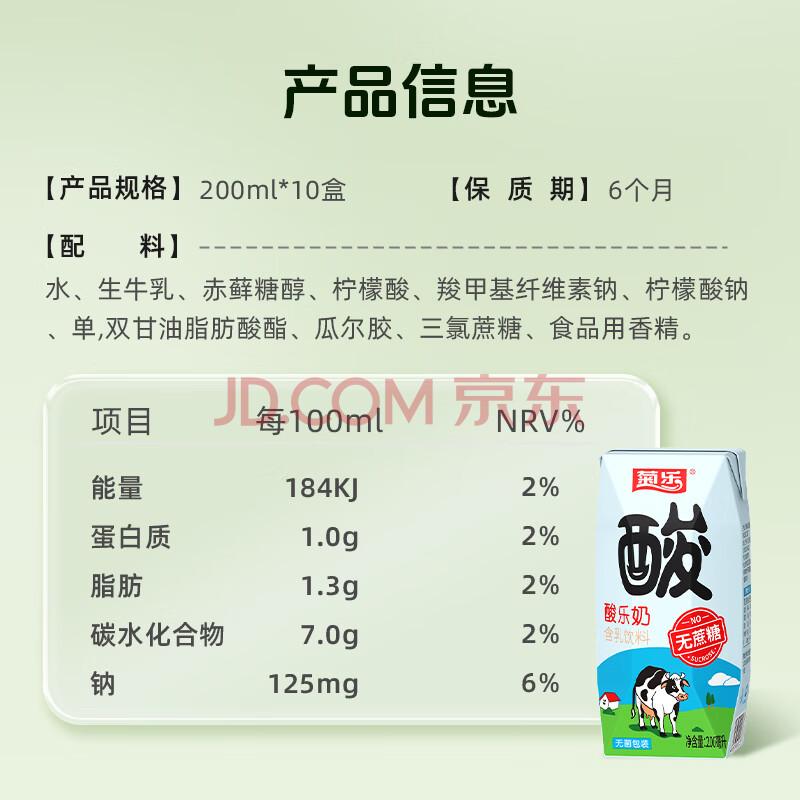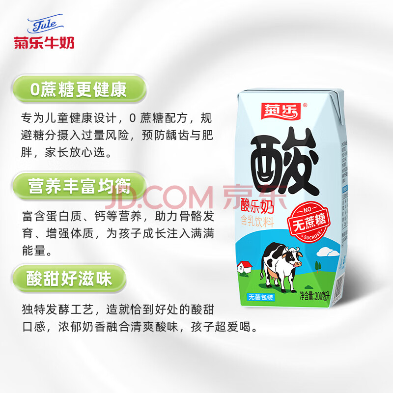商品名称:菊乐无蔗糖酸乐奶儿童早餐奶200ml*10盒酸奶