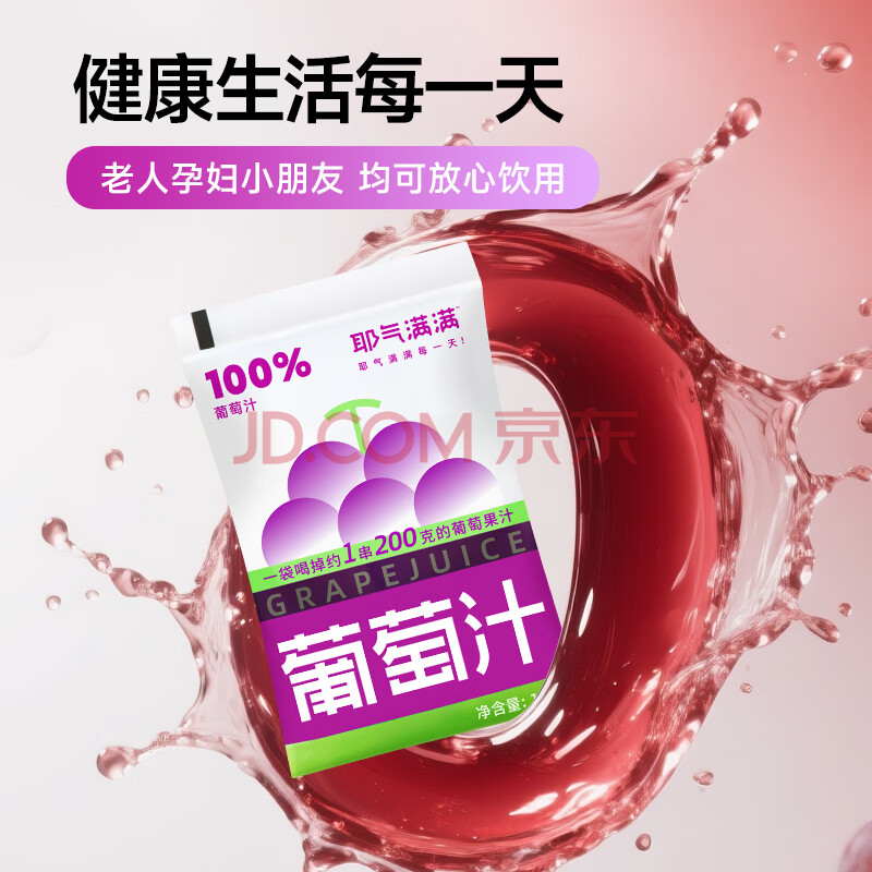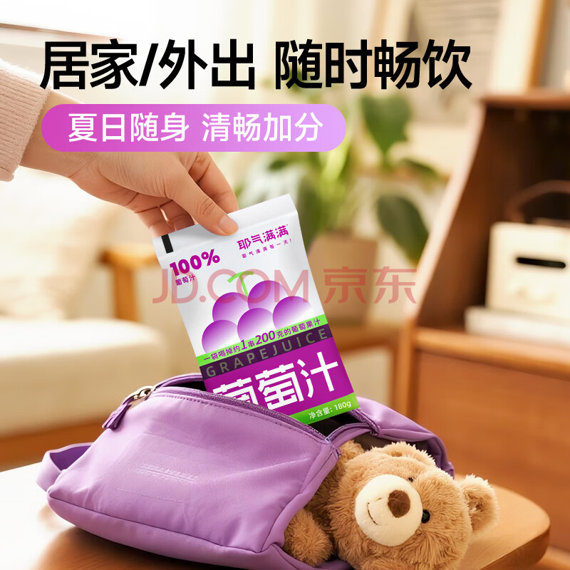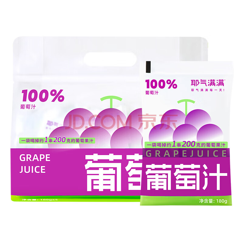 商品名称:耶气满满100%葡萄汁180g*10袋 果汁饮料