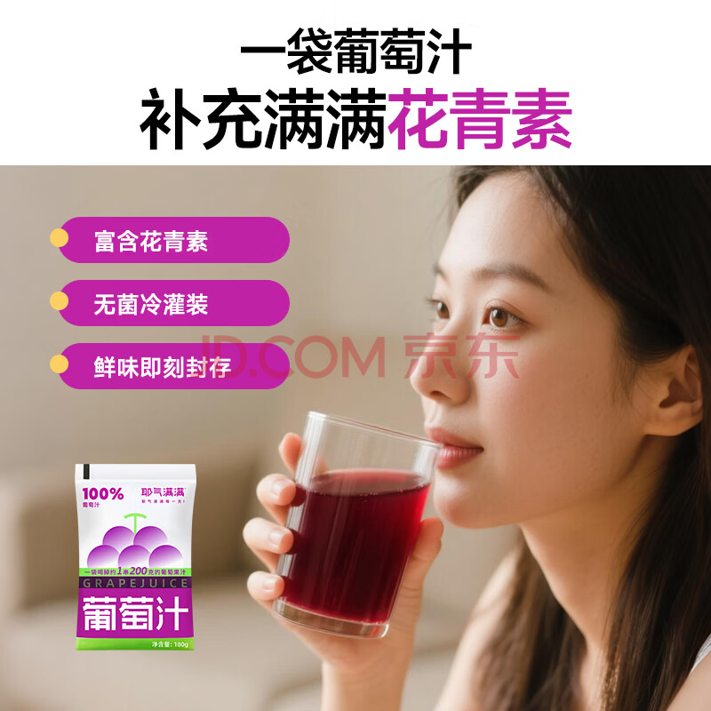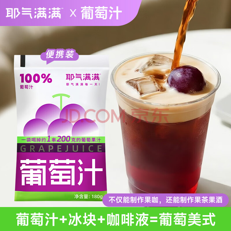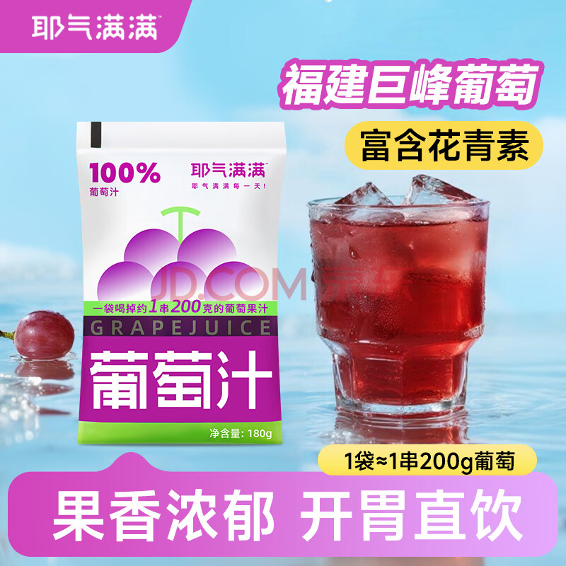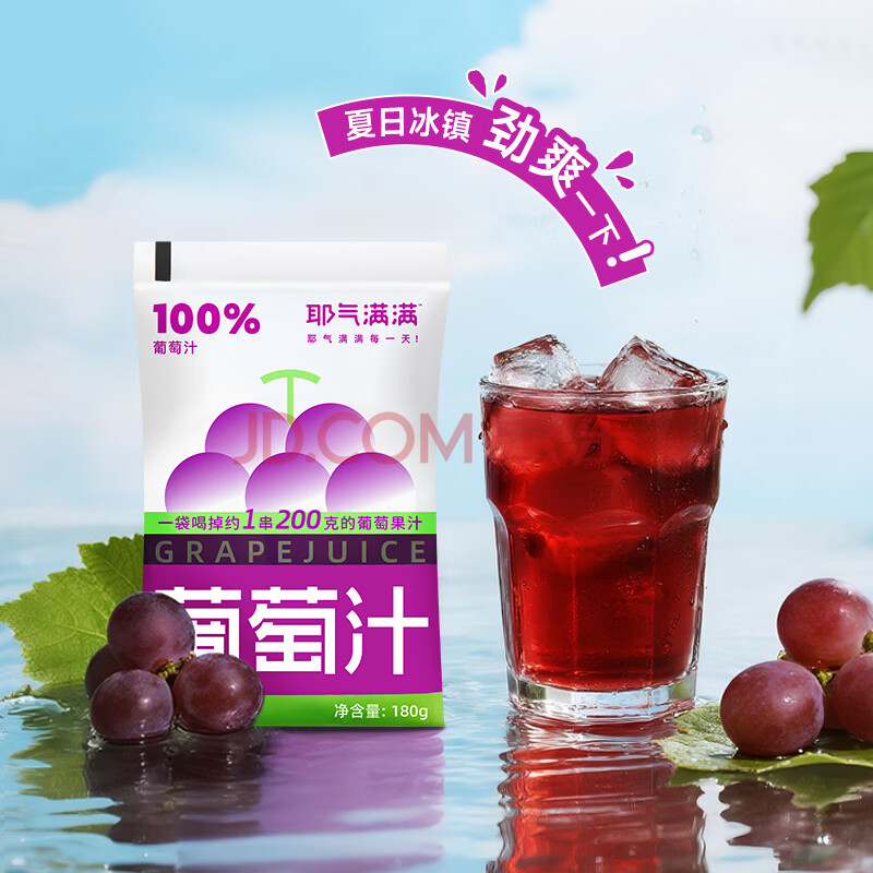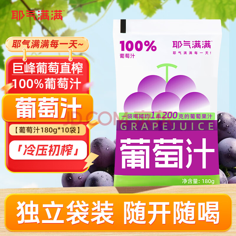 > 耶气满满100%葡萄汁180g*10袋 果汁饮料