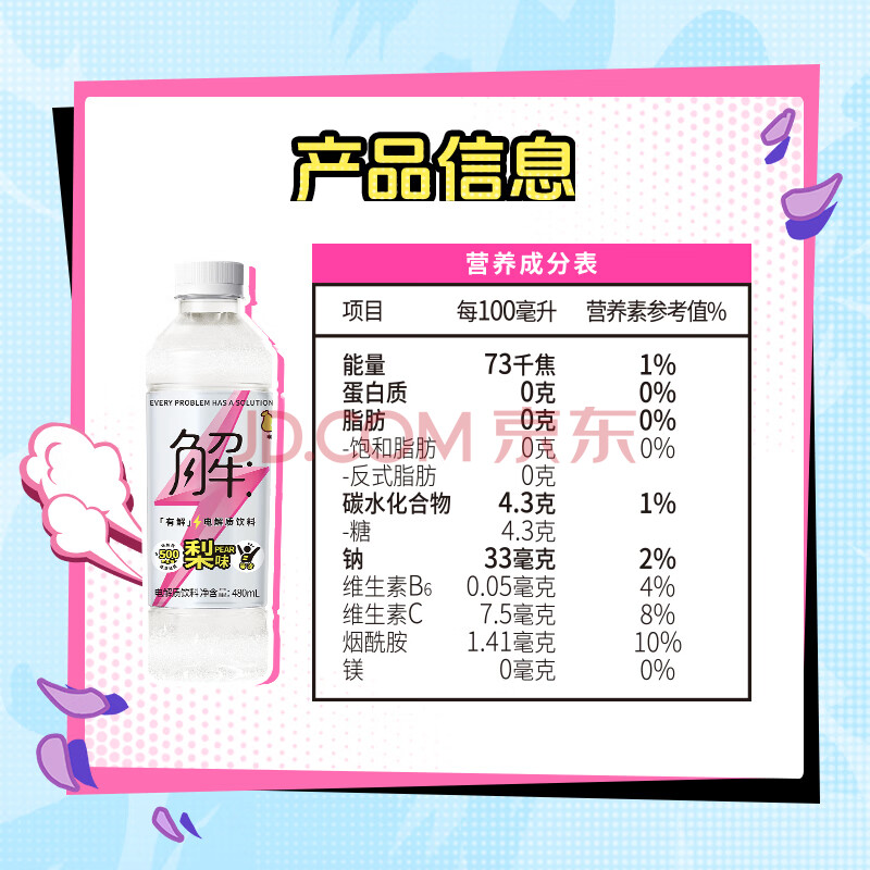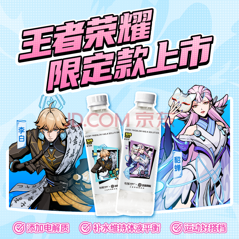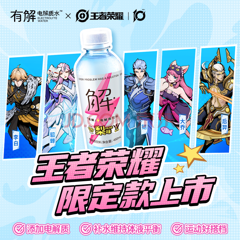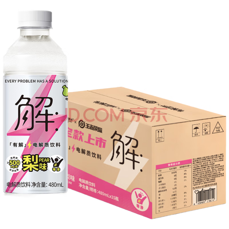 商品名称:屈臣氏有解×王者荣耀梨味电解质水运动功能饮料等渗补水480mL*15瓶整箱
