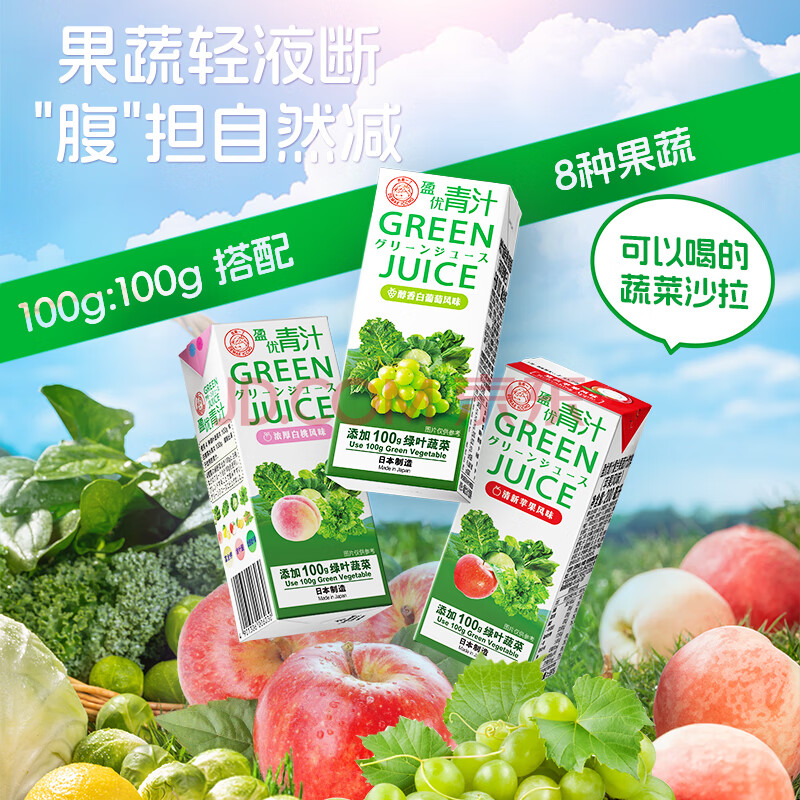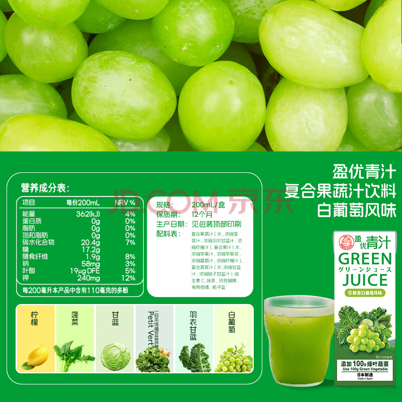 商品名称:出前一丁青汁日本进口果蔬汁蔬菜膳食纤维代餐饮料羽衣甘蓝白葡萄味200ml