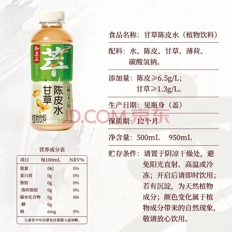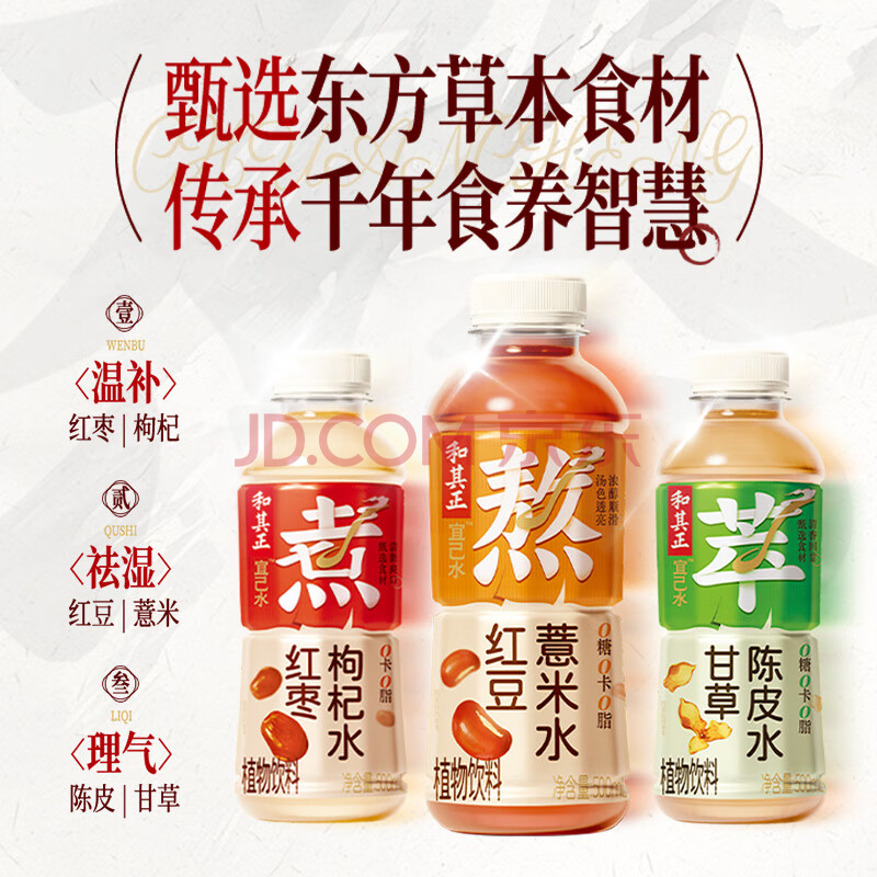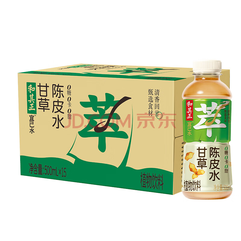 商品名称:达利园和其正宜己水0糖0卡0脂甘草陈皮水500ml*15瓶植物饮料无糖茶整箱
