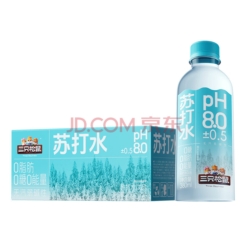 商品名称:三只松鼠苏打水柠檬味380ml*24瓶果蔬膏整箱装饮料无汽弱碱性0糖0脂0能量