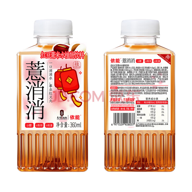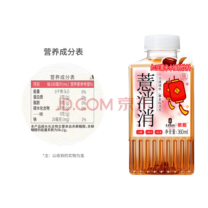 商品名称:依能 红豆薏米水 无糖植物饮料 0糖0脂饮品 360ml*12瓶装