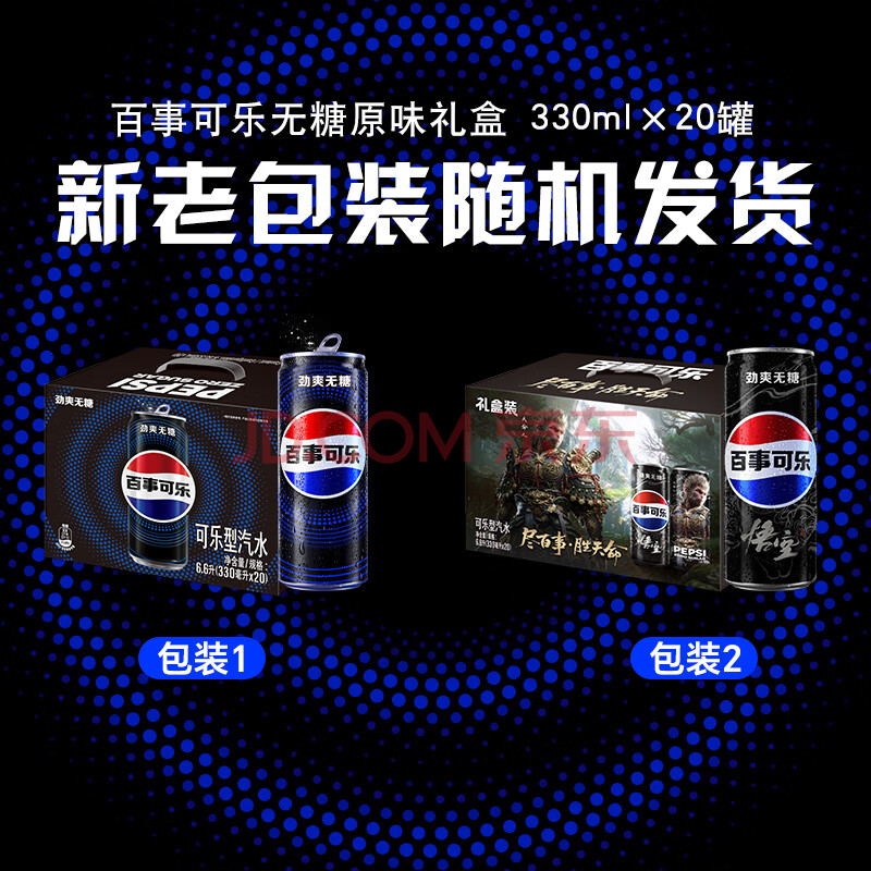 商品名称:百事可乐无糖汽水 碳酸饮料330ml*20听 家庭送礼礼盒 新老包装随机发货