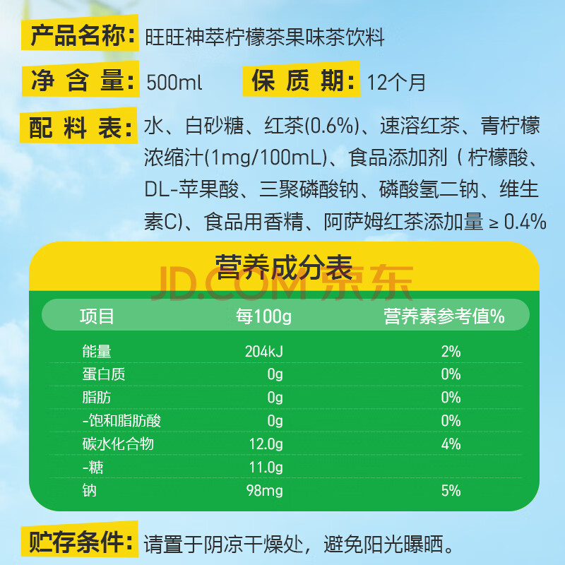 商品名称:旺旺神萃柠檬茶饮料_500ml*15瓶 原味