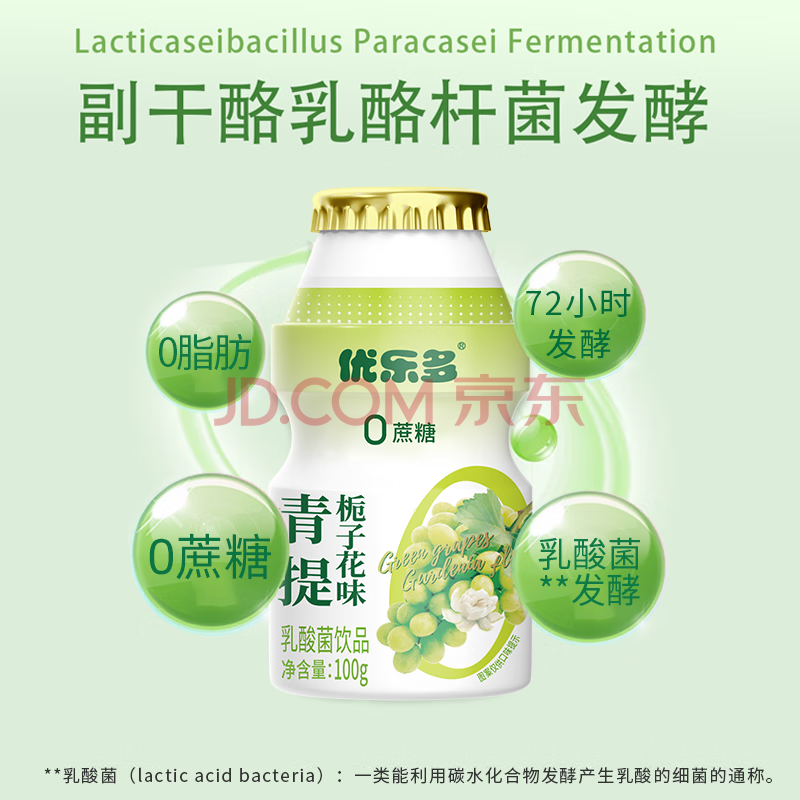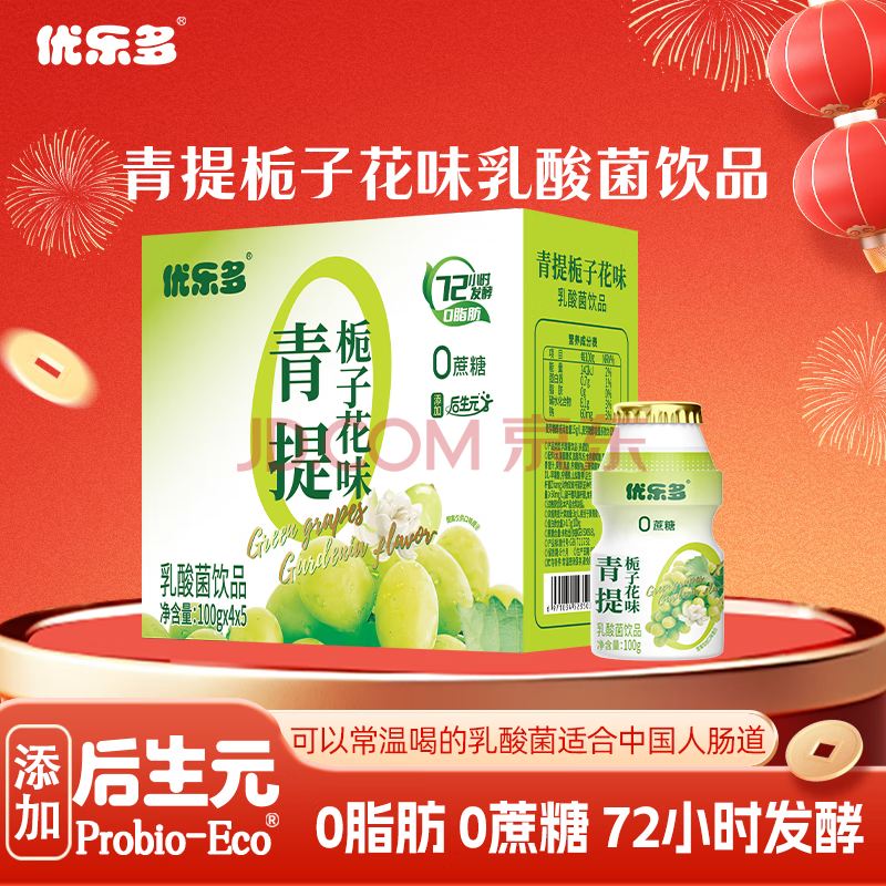 商品名称:优乐多乳酸菌饮品 青提栀子花味 益生菌早餐酸奶 100g*20瓶 饮料