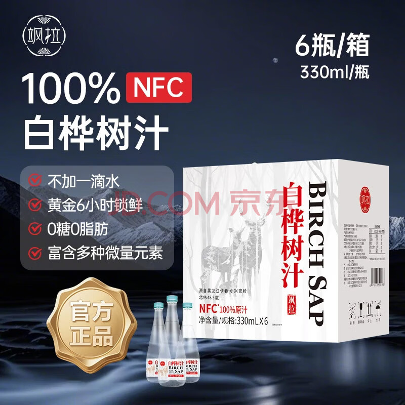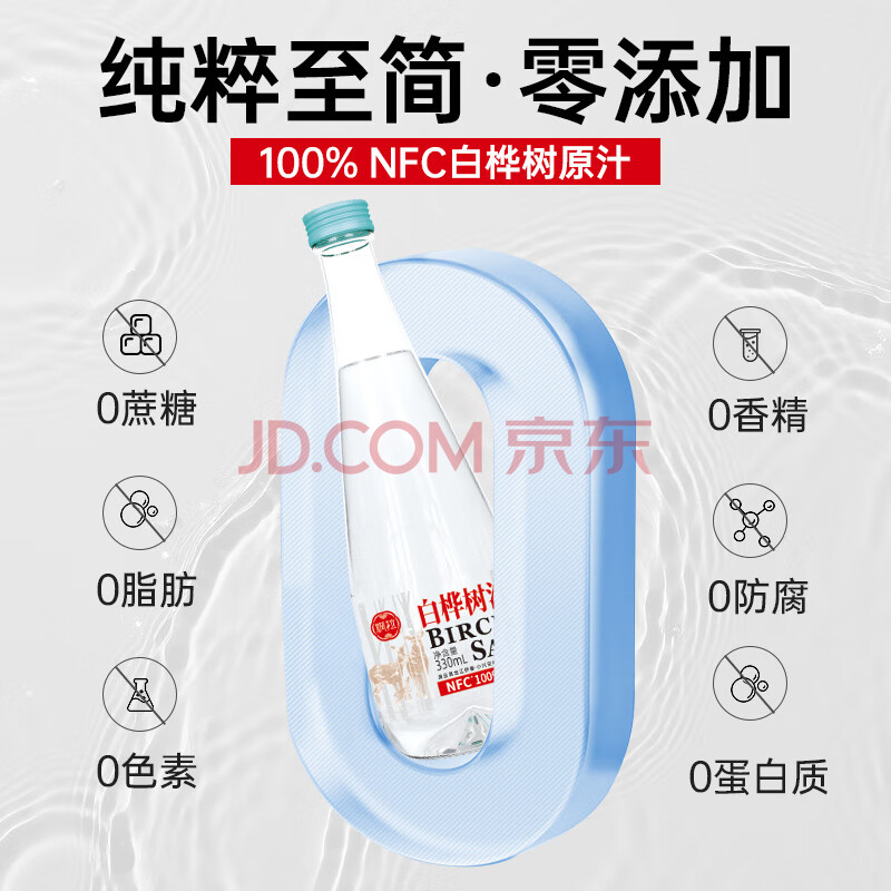 > 飒拉白桦树汁 100%纯天然NFC原液果蔬汁饮料 330ml*6瓶/箱 年货节送礼