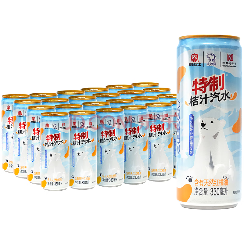 商品名称:北冰洋 特制桔汁汽水 330ml*24罐 果汁碳酸饮料整箱 果汁经益生菌发酵