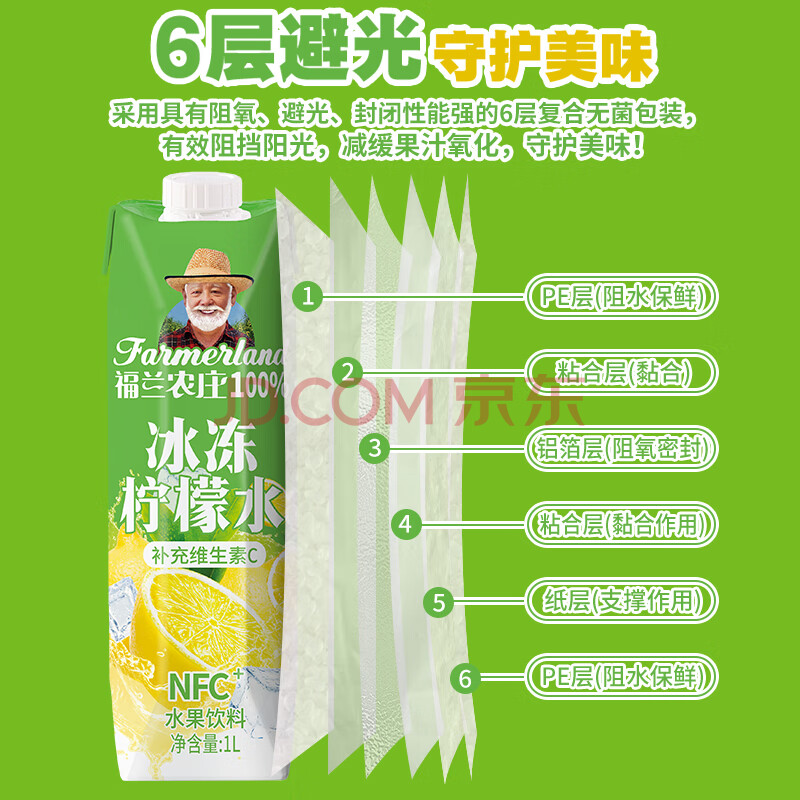 商品名称:福兰农庄冰冻柠檬水1L柠檬汁饮料0脂肪nfc柠檬汁补充维生素c
