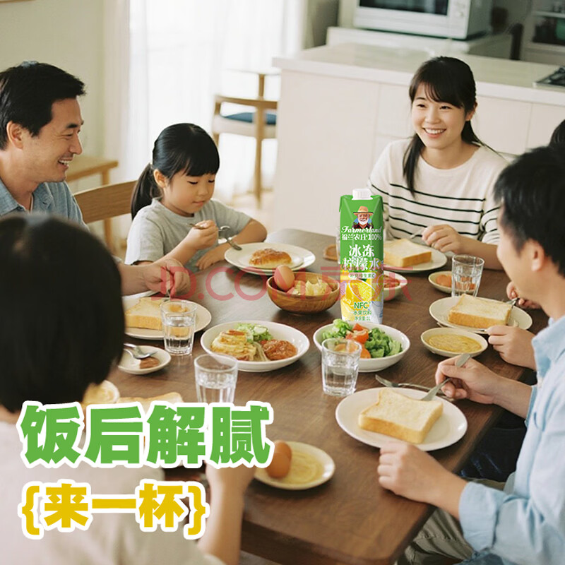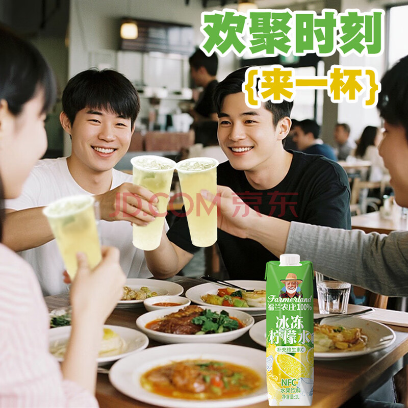 > 福兰农庄冰冻柠檬水1L柠檬汁饮料0脂肪nfc柠檬汁补充维生素c