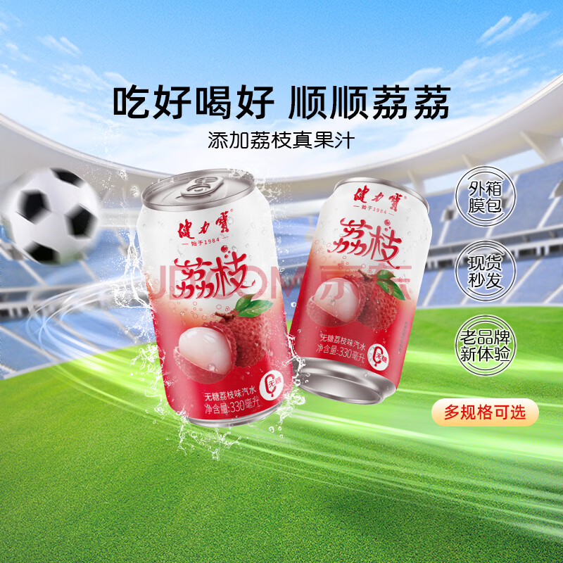 健力宝无糖荔枝味汽水饮料0糖0脂0卡330mL*20罐碳酸饮料气泡解腻
