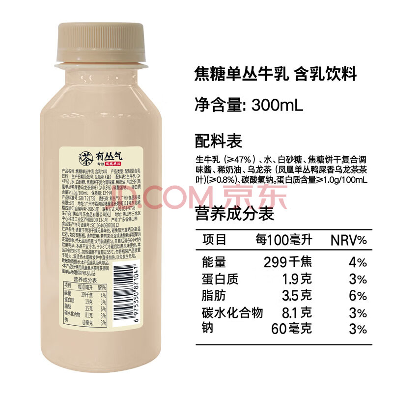 商品名称:有丛气卡美罗焦糖奶茶 焦糖单丛牛乳含乳饮料300mL*12瓶