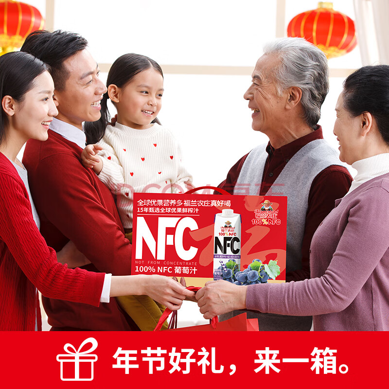 福兰农庄FARMERLAND 100%NFC葡萄汁0脂肪果蔬汁饮料纯果汁1L装年货