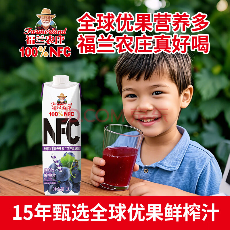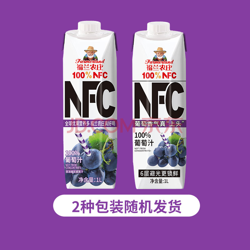 商品名称:福兰农庄FARMERLAND 100%NFC葡萄汁0脂肪果蔬汁饮料纯果汁1L装年货