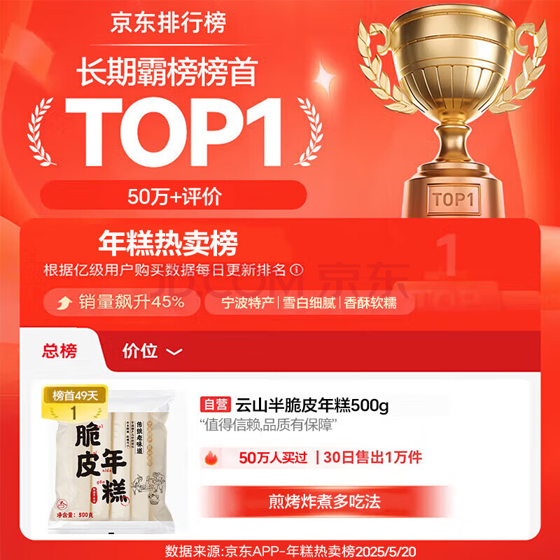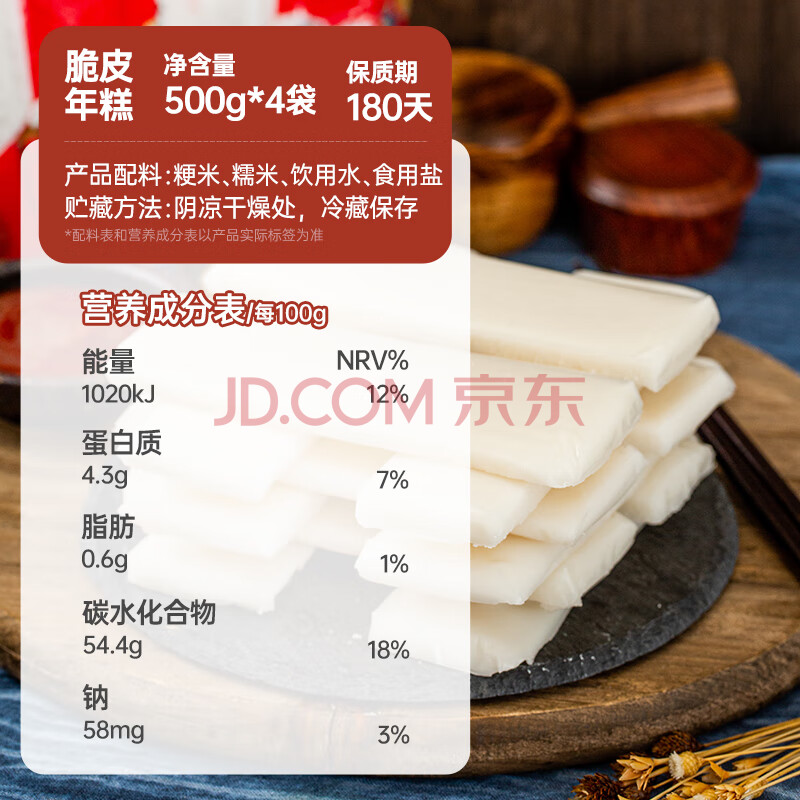 商品名称:云山半脆皮年糕500g*4袋 约24根 烧烤专用食材 宁波特产方便速食