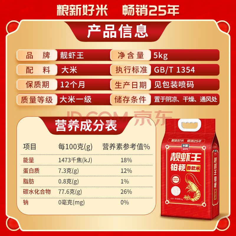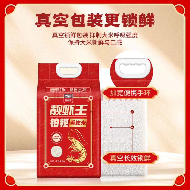 商品名称:太粮靓虾王铂粳香软米10斤装 大米家庭装5kg 年货京东自营 当季新米
