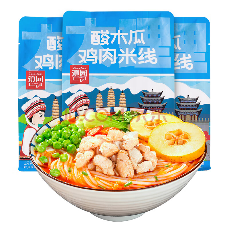 商品名称:滇园 大理酸木瓜鸡肉米线316g×3袋 云南特产过桥米线螺蛳粉方便速食