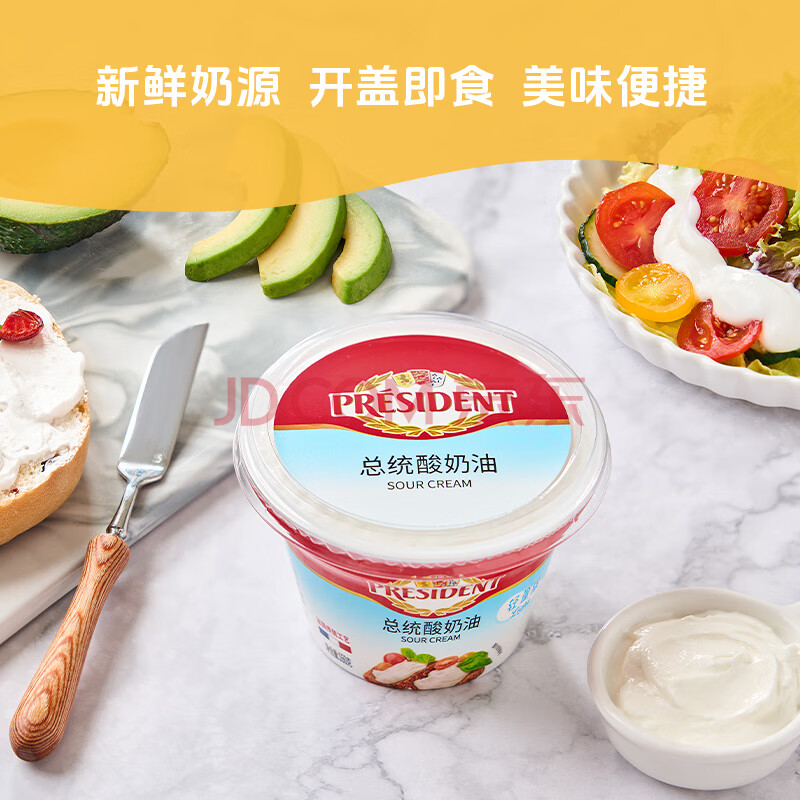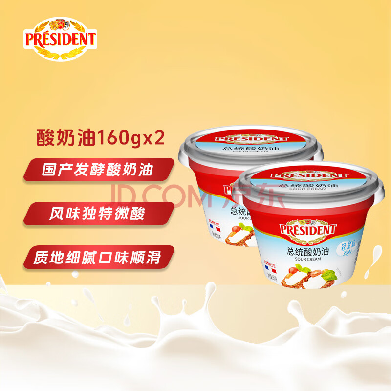 > 总统(President)国产 酸奶油160g*2 即食 沙拉 西餐 重芝士蛋糕 烘焙原料