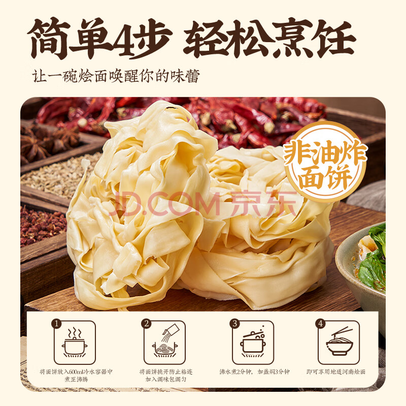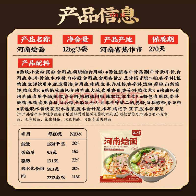 商品名称:云山半河南烩面126g*3袋 非油炸汤面板面宽面 方便速食挂面面条