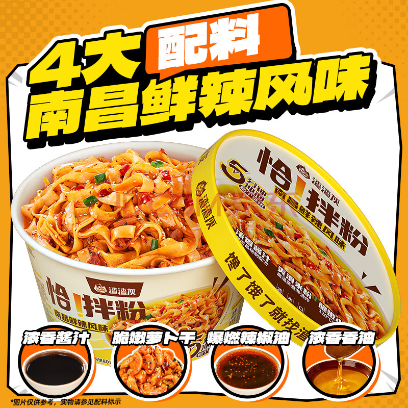 商品名称:渣渣灰南昌拌粉124g*6桶鲜辣风味桶装冲泡即食河粉懒人方便速食早餐夜宵