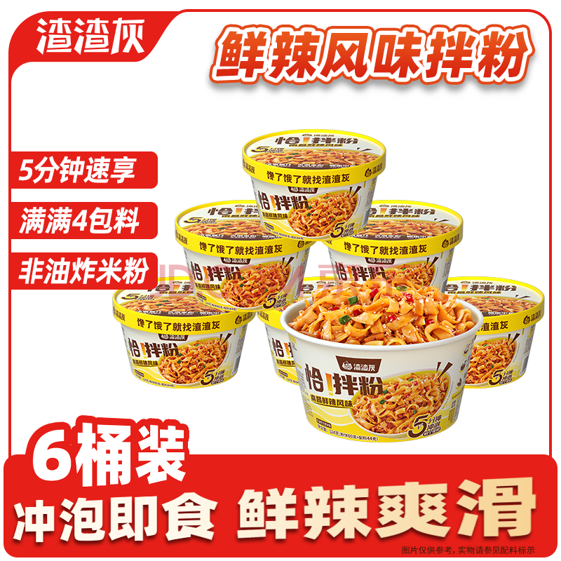 > 渣渣灰南昌拌粉124g*6桶鲜辣风味桶装冲泡即食河粉懒人方便速食早餐夜宵