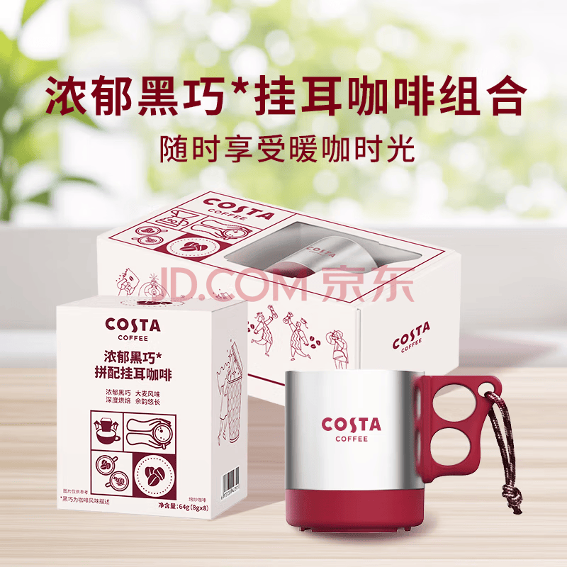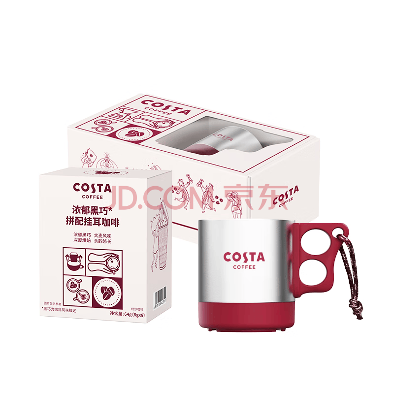 商品名称:COSTA浓郁黑巧挂耳咖啡礼盒门店同款豆深烘不锈钢挂耳桌面杯组合套装