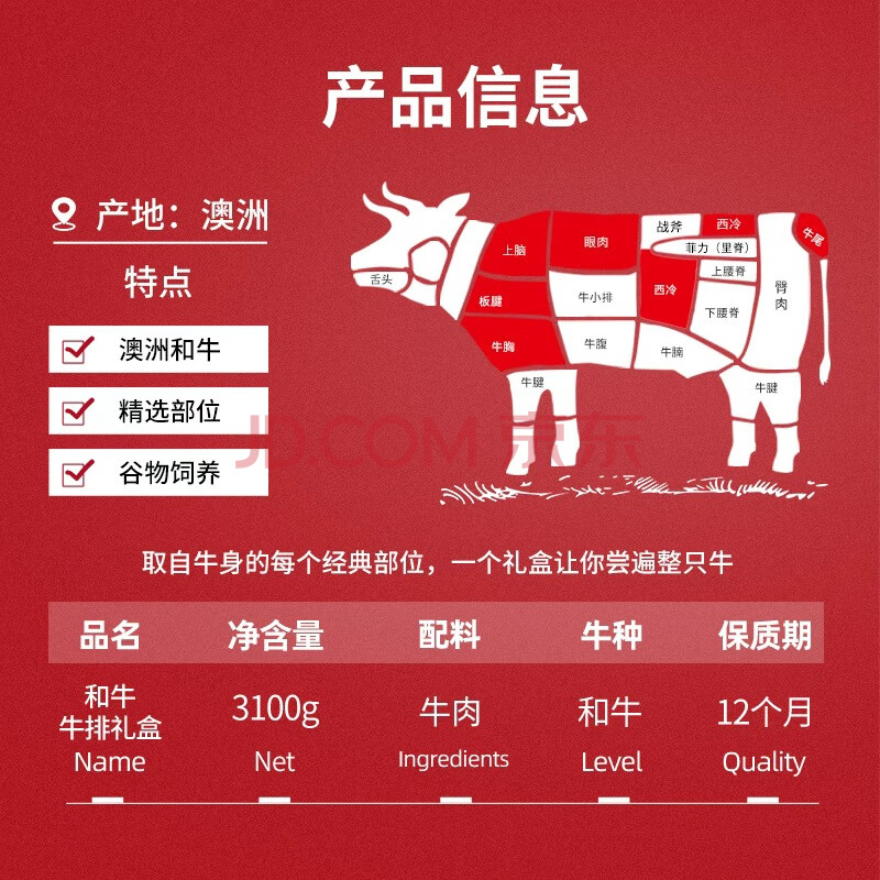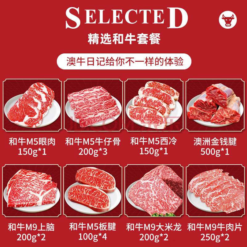 商品名称:澳牛日记 澳洲和牛牛排高档礼盒 净重6.2斤 澳洲原切牛排雪花牛肉送礼