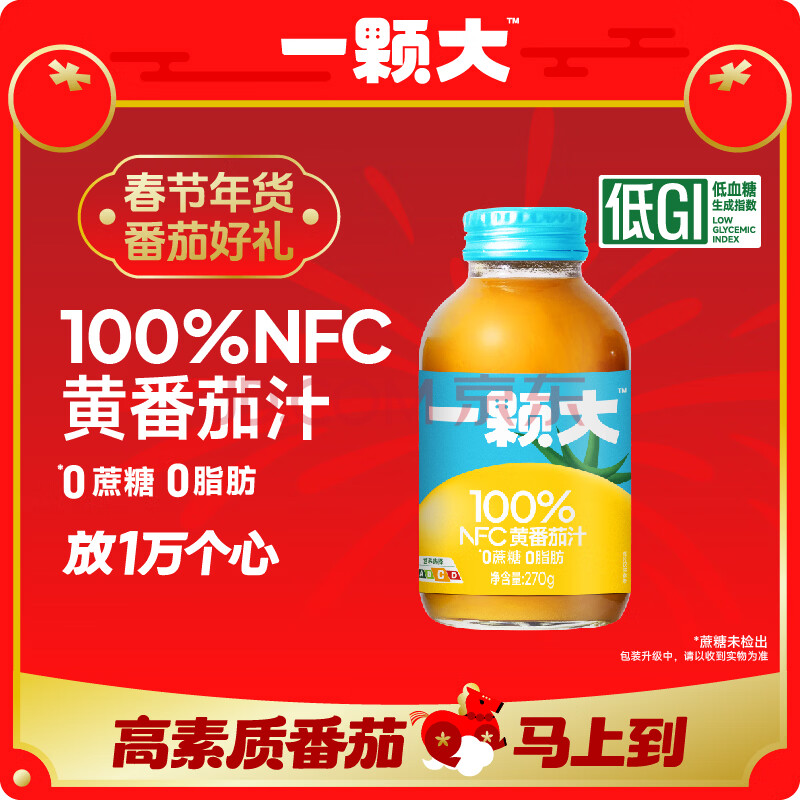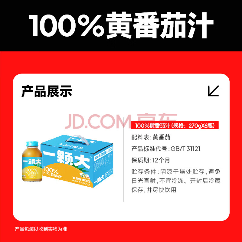 商品名称:一颗大 100%NFC黄番茄汁 非浓缩还原 果蔬汁饮料 樱桃串番茄 270g*6瓶