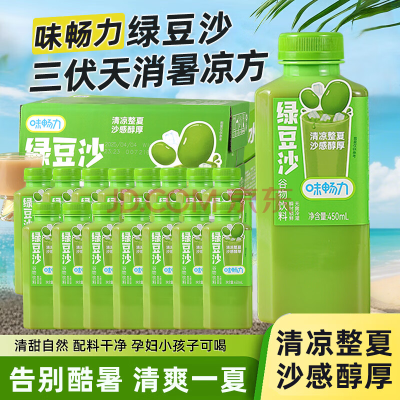 商品名称:味畅力绿豆沙饮料450ml*15瓶清凉解暑谷物饮料沙感醇厚休闲饮料