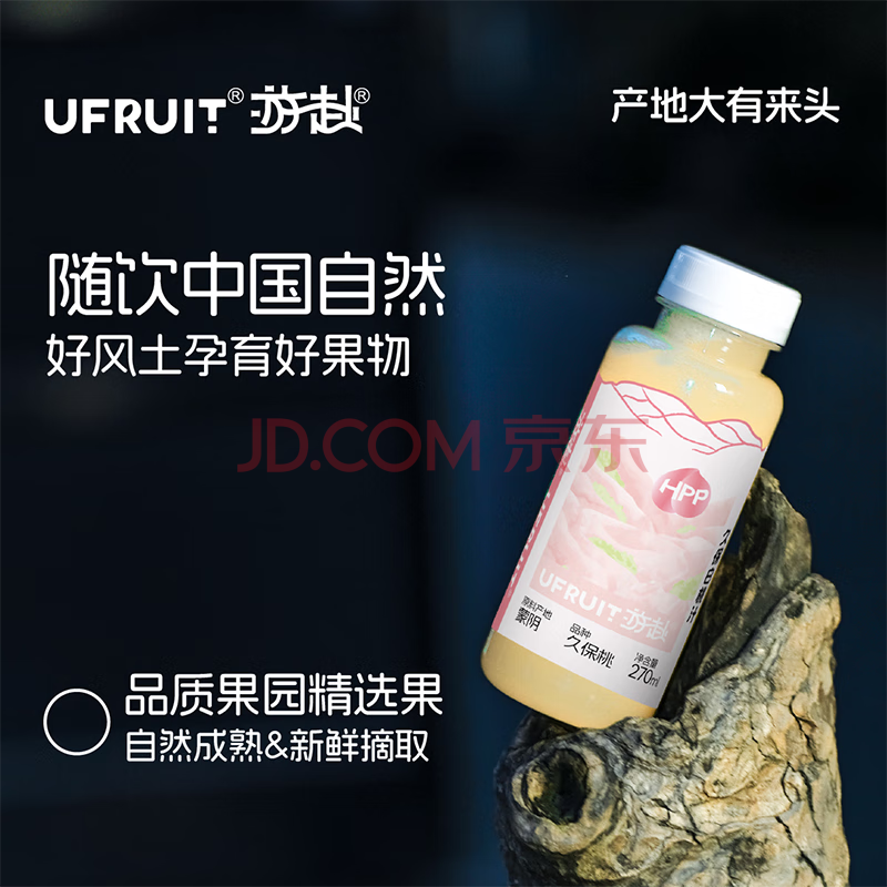 > UFRUIT游赴100%HPP冷藏果汁饮料无添加 久保桃汁270ml*6瓶 整箱装