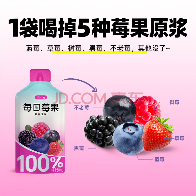 商品名称:莓小仙100%NFC每日莓果花青素饮料50ml*10袋/箱非浓缩纯果汁0添加防腐剂