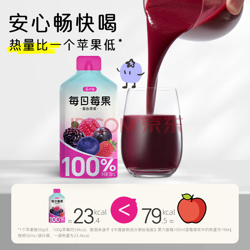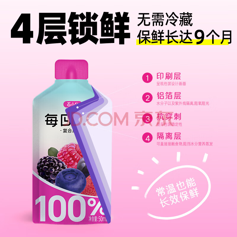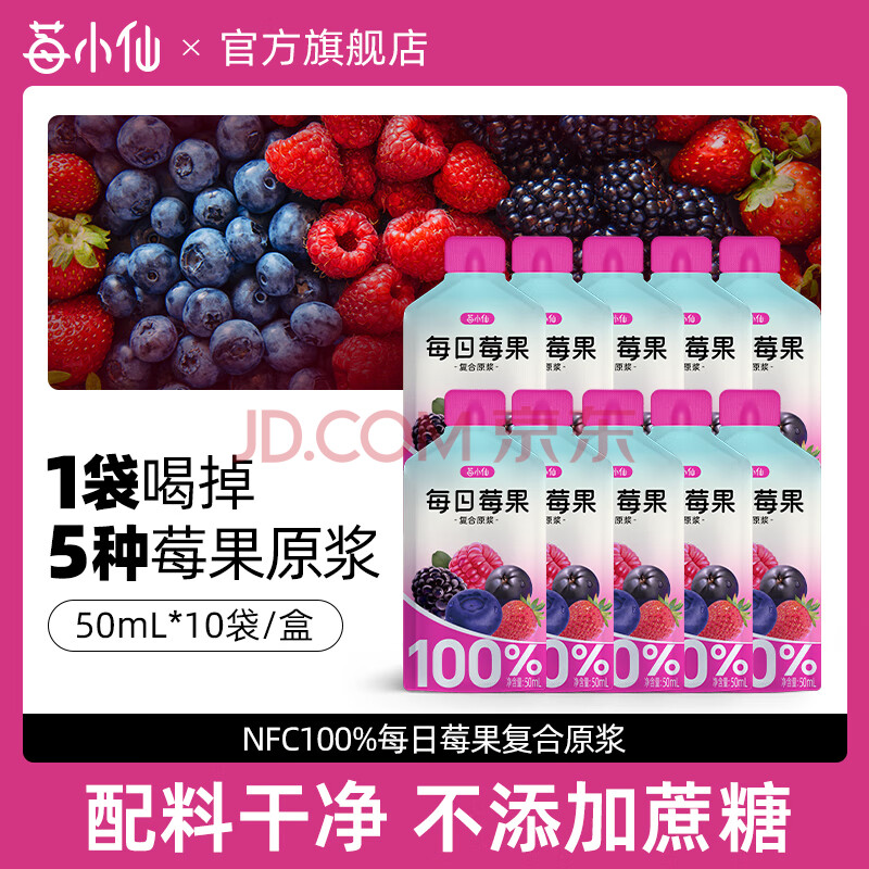 > 莓小仙100%NFC每日莓果花青素饮料50ml*10袋/箱非浓缩纯果汁0添加防腐剂