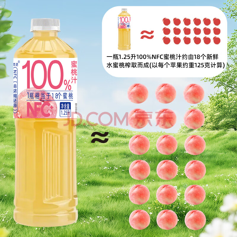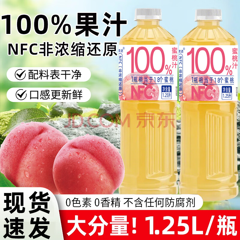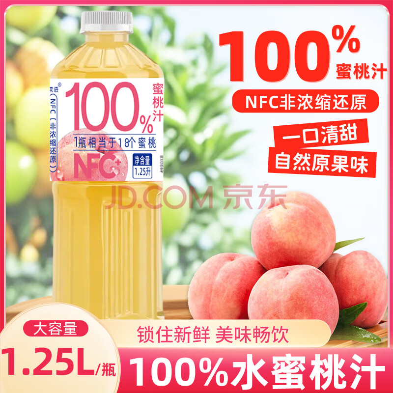 商品名称:珍珠湾 NFC蜜桃汁1.25L大瓶装100%纯果汁夏日解渴解暑解腻家庭畅饮料品