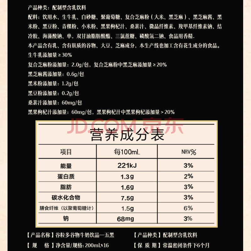 商品名称:伊利谷粒多生牛乳五黑 200ml*16盒 礼盒装