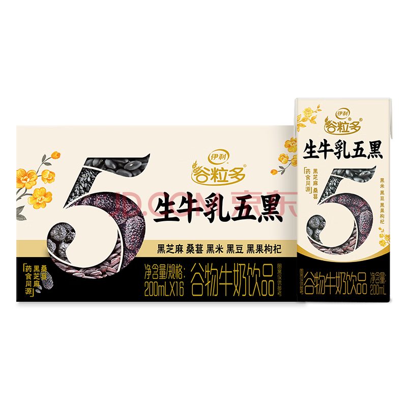 > 伊利谷粒多生牛乳五黑 200ml*16盒 礼盒装