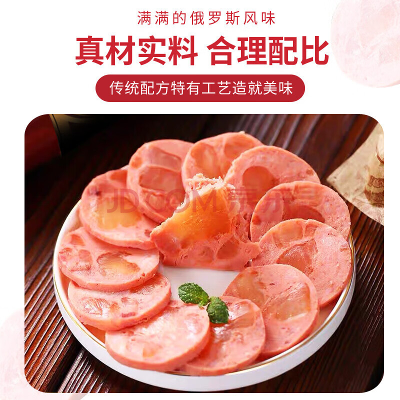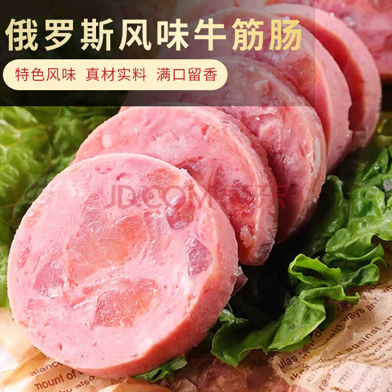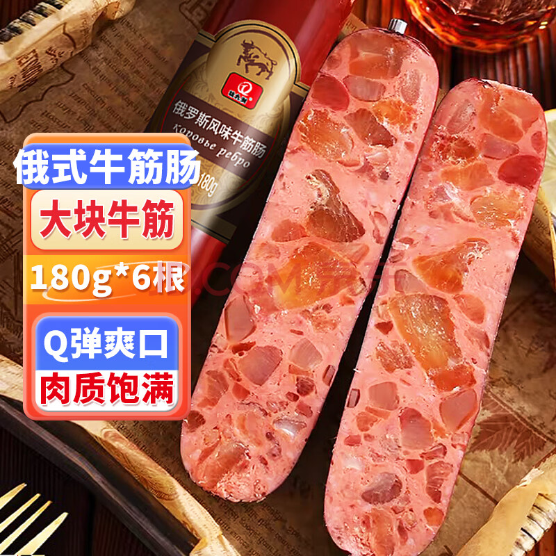 商品名称:满口佳 俄罗斯风味牛筋肠火腿牛肉香肠年货休闲零食方便速食180g*6根