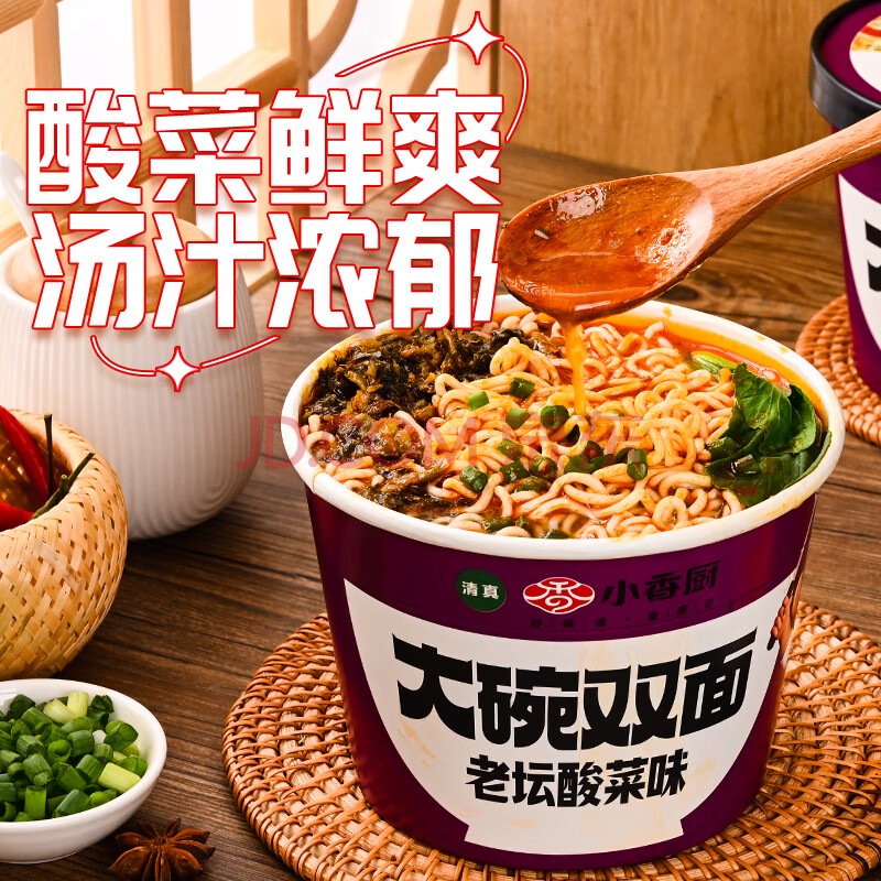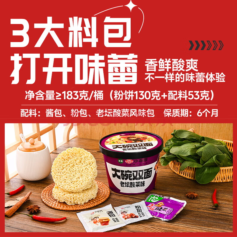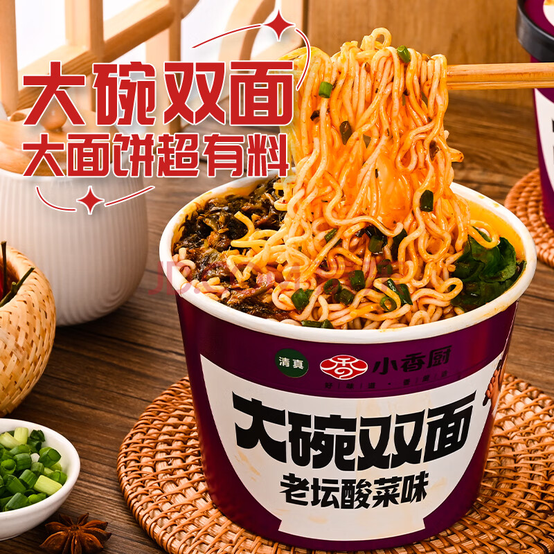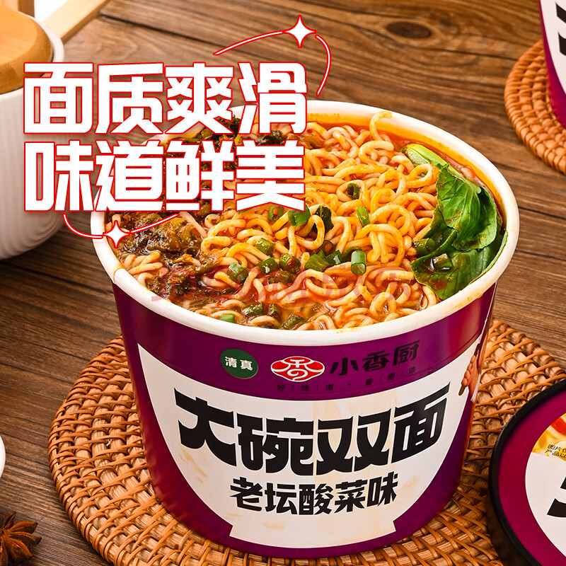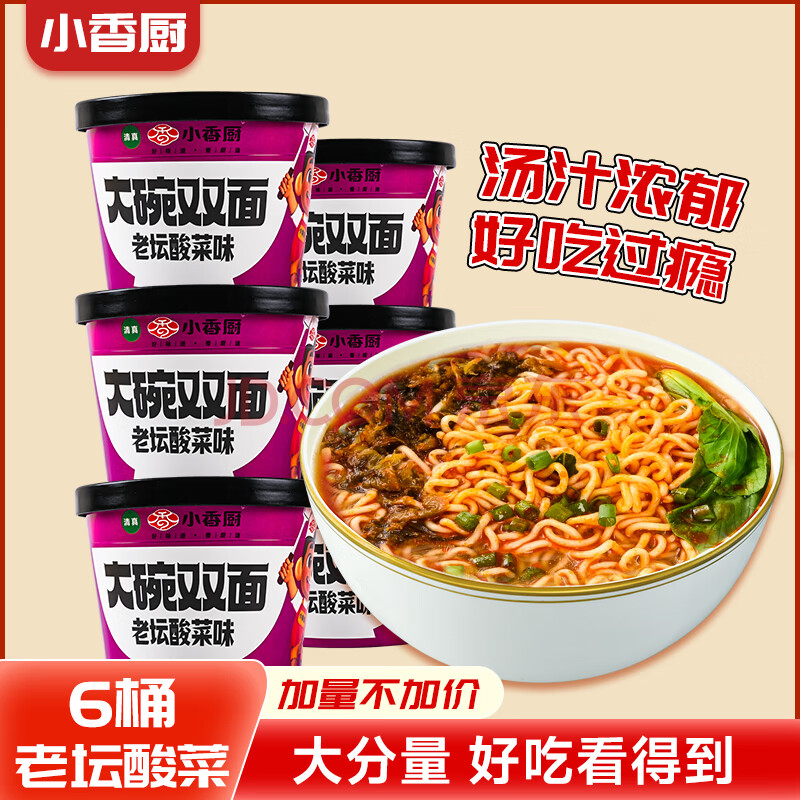 商品名称:小香厨方便面 大碗双面老坛酸菜味183g*6桶 双份面饼免煮方便速食