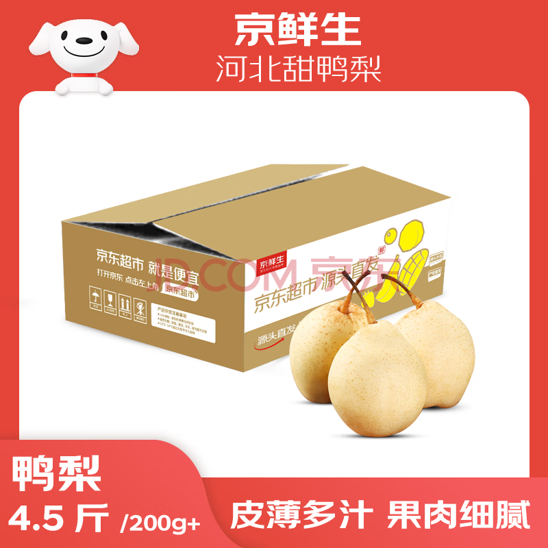 商品名称:京鲜生 河北特产水晶甜鸭梨 净重4.5斤 单果200g+ 生鲜水果 源头直发