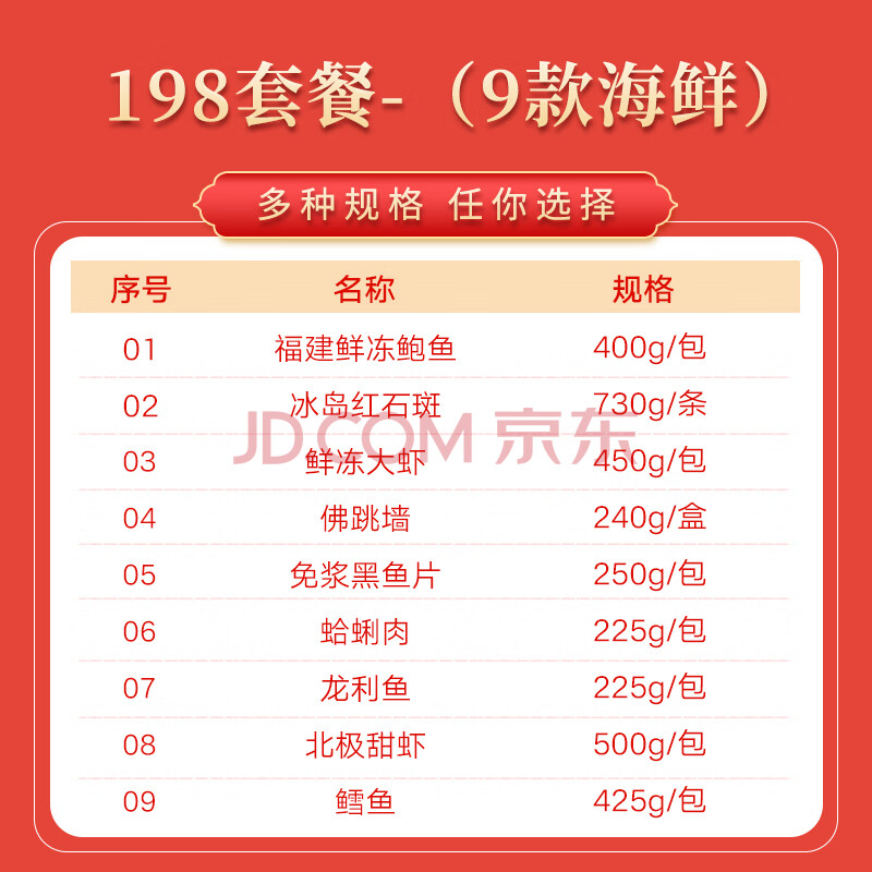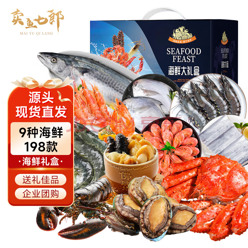 商品名称:卖鱼七郎 【现货】 青岛海鲜礼盒 年货节海鲜大礼包 国产海鲜 198款【9款海鲜】 源头直发